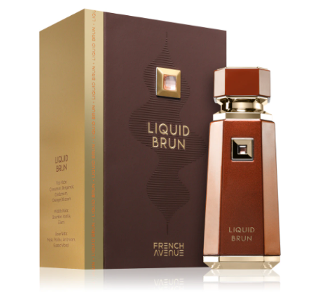 Liquid Brun di French Avenue è una fragranza del gruppo Woody da uomo. È una nuova fragranza. Liquid Brun è stato lanciato sul mercato nel 2024. Le note di testa sono Cannella, Fiore d'Arancio, Cardamomo e Bergamotto; le note di cuore sono Vaniglia Bourbon e Elemi; le note di base sono Pralina, Ambroxan, Legno di Guaiaco e Muschio. Questo profumo ricorda: Parfums de Marly Althaïr. A chi piace questo profumo piace anche: Parfums de Marly Layton, Parfums de Marly Herod, By Kilian Angels' Share