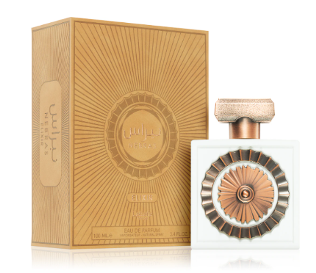 Nebras Elixir di Lattafa Perfumes è una fragranza del gruppo Orientale Vanigliato unisex. È una nuova fragranza. Nebras Elixir è stato lanciato sul mercato nel 2025. Il Naso di questa fragranza è Nanako Ogi. Le note di testa sono Caramella al Latte e Panna Montata; le note di cuore sono Canna da Zucchero e Eliotropio; le note di base sono Vaniglia, Ambroxan e Muschio. A chi piace questo profumo piace anche: Juliette Has A Gun Not A Perfume, Guerlain Spiritueuse Double Vanille, Maison Francis Kurkdjian Baccarat Rouge 540