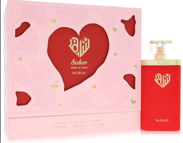 Saher di Nusuk è una fragranza del gruppo Floreale Fruttato Gourmand da donna. È una nuova fragranza. Saher è stato lanciato sul mercato nel 2025. Le note di testa sono Pelle Scamosciata, Polpa di Mela e Ribes Nero; le note di cuore sono Mughetto, Petali di Rosa, Legno di Cashmere e Gelsomino; le note di base sono Vaniglia, Muschio Bianco, Pesca e Ambra Grigia.