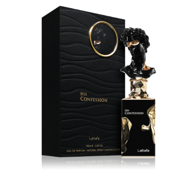 His Confession di Lattafa Perfumes è una fragranza del gruppo Oriental Woody da uomo. È una nuova fragranza. His Confession è stato lanciato sul mercato nel 2024. Le note di testa sono Lavanda, Cannella e Mandarino; le note di cuore sono Iris, Benzoino, Cipresso e Mahonial; le note di base sono Vaniglia, Fava Tonka, Ambra, Incenso, Legno di Cedro e Patchouli. Questo profumo ricorda: Celine Black Tie. A chi piace questo profumo piace anche: Lattafa Khamrah, Lattafa Khamrah Qahwa, Rasasi Hawas for Him